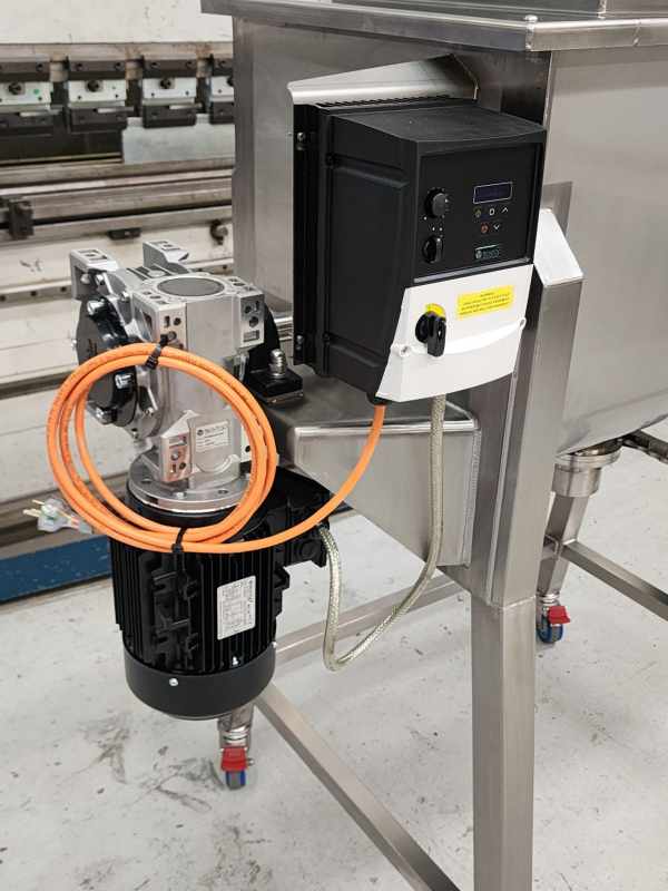 200 litre budget mobile ribbon blender. By having a bolted lid the need for a safety switch is removed and the blender can be turned on and off via the VSD which also has the advantage of not requiring a SS control panel.