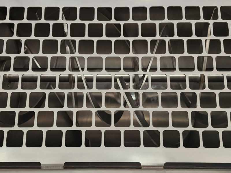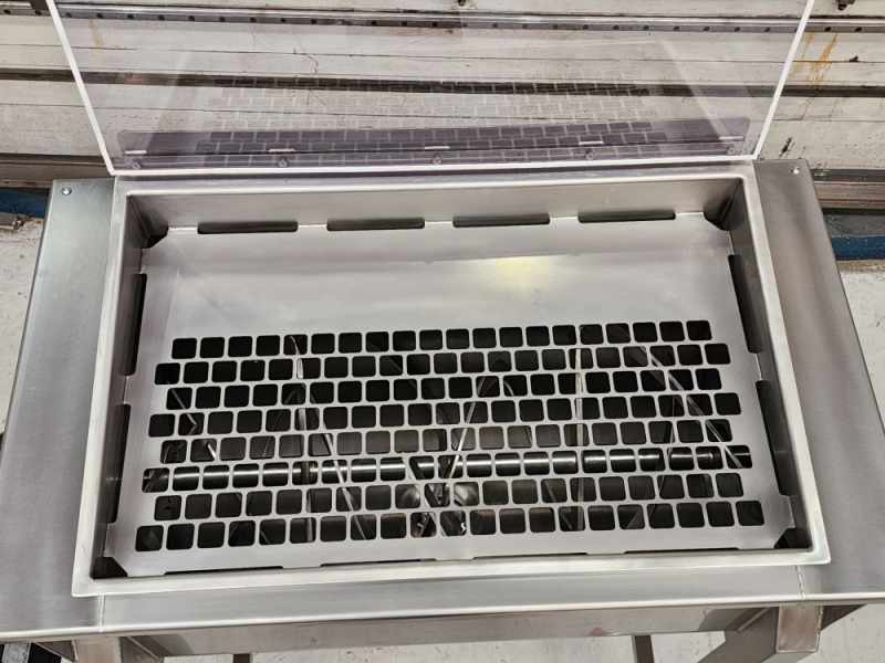The fixed grid under the hinged perspex lid gives a very strong support to open bags and load the blender.