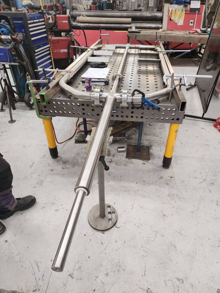 Custom fabricated stainless steel contra-mix kettle designed and built from scratch with pride and care in our Minto workshop.