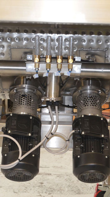 > liquid addition points with spray heads for better dispersion