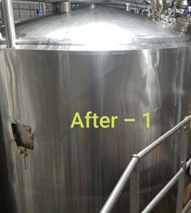 This past week we finally finished repairing a 24,000 litre mix tank – took 2 1/2 weeks to do given the extremely difficult position the tank was in – 100mm from the wall on one side, 100mm from the adjacent tank on the opposite side, against the access platform at the front and a 800 wide walkway behind between other tanks in the tank farm, very little room to the ceiling and a total maze of pipework underneath, not to mention the temperature of about 30 degrees with 98% humidity as well as a very pedantic OH&S officer. What looked like a total write-off was salvaged so as to be a usable tank once more; another happy customer.