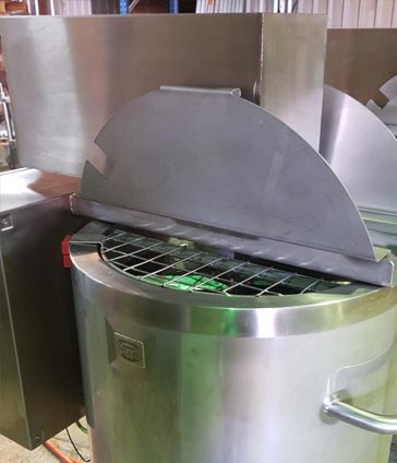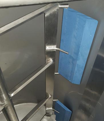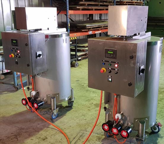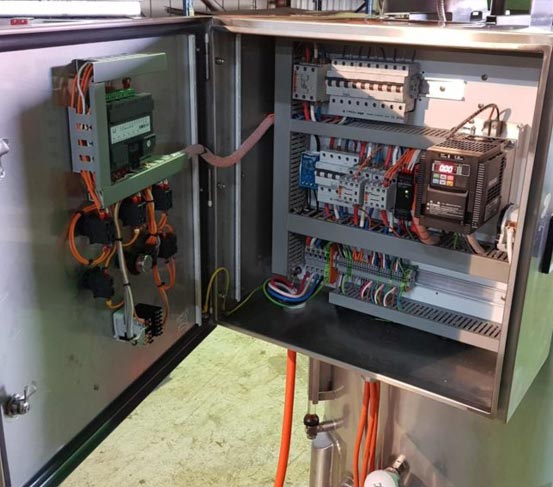 Just finished 2 of 200 litre jacketed mix tanks for a very satisfied customer. The water jacket is to heat the product to 62°C in 30 minutes. The agitator has metal detectable scraper blades, and the agitator is PLC controlled so that it runs for a short time [30 seconds] and then pauses for a set period and cycles through so as not to overmix the product. All complete system is wired to Cat 4 safety standards.