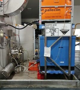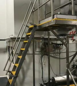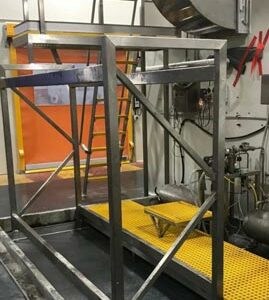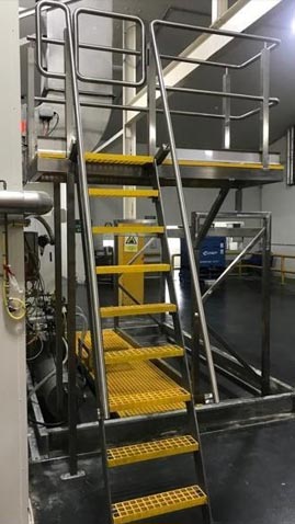 Just completed a safety access system complete with bund to a pallecon storage area. 2 of the pallecons contained canola oil and as expected, there are small spills which make the access are very slippery. We created a slightly elevated walk zone sheeted out with non-slip FRP grid and created an access platform so as to enable inspection of the pallecons on the top shelf.